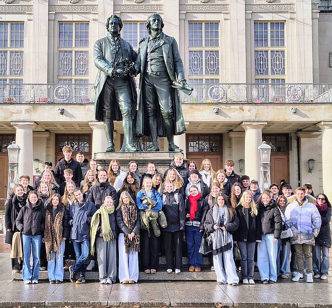 Vom 19. bis zum 21. Februar begab sich die Klassenstufe 13 der IGS Kastellaun auf eine dreitägige Studienfahrt nach Weimar, deren Ziel es war, Geschichte und Kultur nicht nur im Unterricht zu behandeln, sondern vor Ort zu erleben und ein tieferes Verständnis für bedeutende Epochen der deutschen Vergangenheit zu gewinnen.